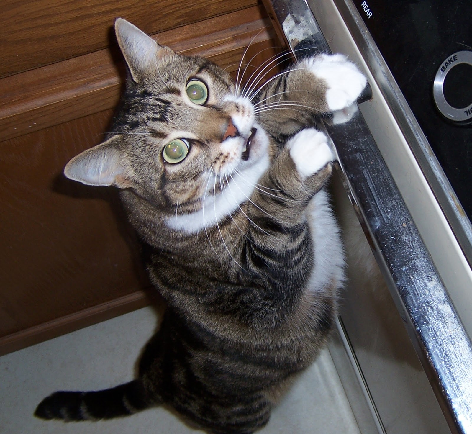 Like I said, I finished breakfast, dogs and cat all got pancakes. Kitty adores these so much the minute I take the griddle out of the cabinet, he's at his station, near the stove waiting, and as they get done, he assumes the position to remind me of his dire need for them!
